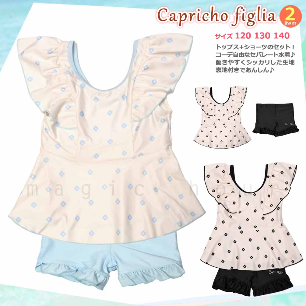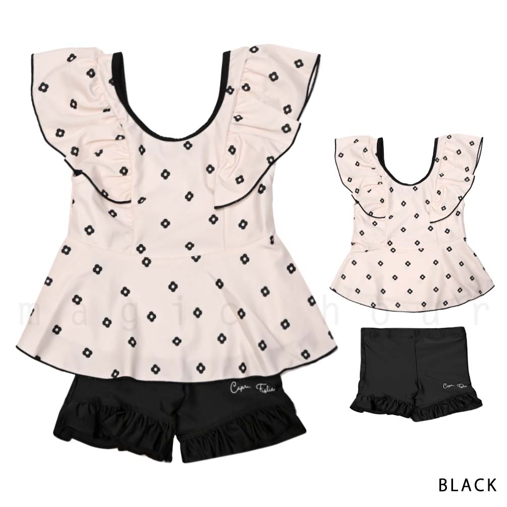◆ Capricho figlia キッズ ジュニア ガールズ スカート付き 水着 花柄 ドット フリル モノクロ お洒落 女の子 女児 スイムウェア◆