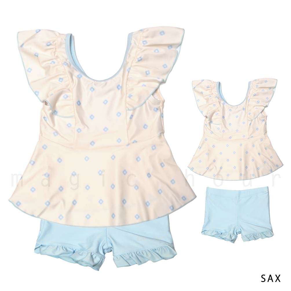 サイズ: 120, 130, 140/ 身長に合わせてお選びください。 ドッド調の花柄がかわいいガールズ水着!フリルデザインがちょっぴりお嬢様なセパレーツ水着♪ しっかり伸縮しぴったりフィット。日本のスイムウェアメーカーの商品なので安心ですね! トップスとショーツが別々になったセパレートタイプ。動きやすくシッカリした生地と肌触りのよい裏地付き!透け感なしで安心☆ |